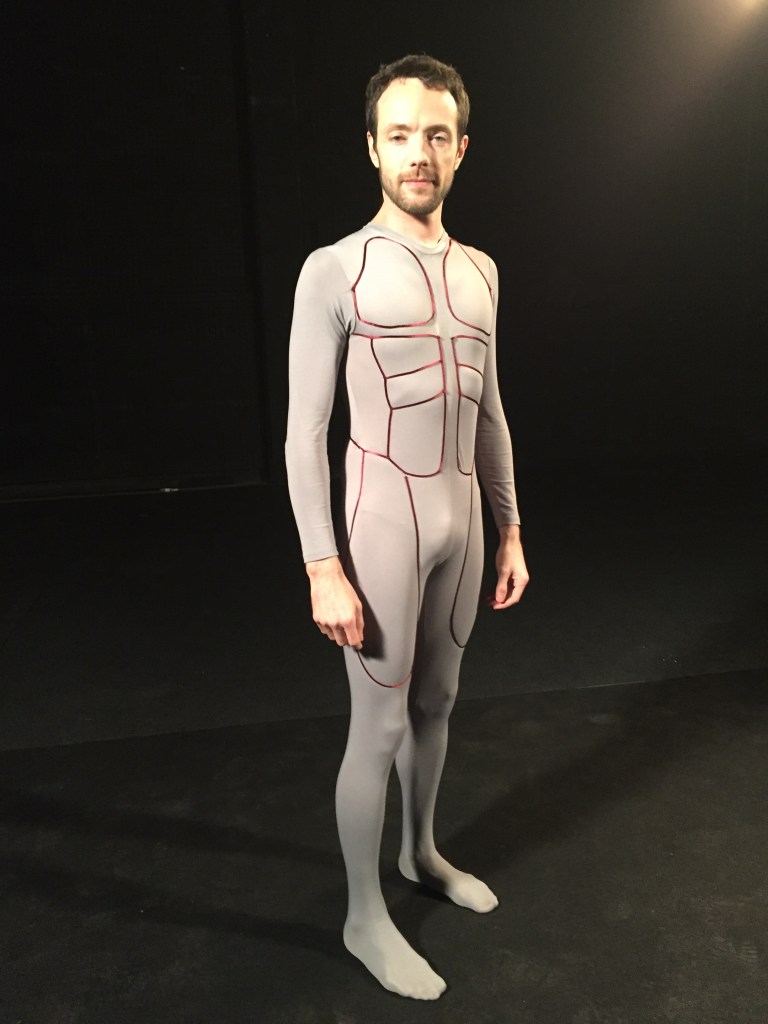 So, we have chosen grey for the color of the suit so as to match the color of the spaceship.