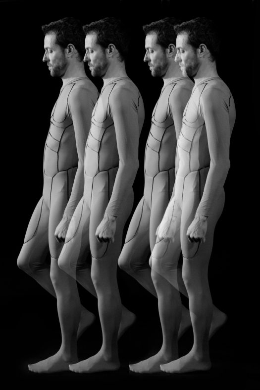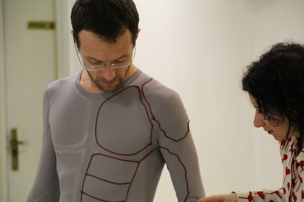 スーツには茶色のムーブメントラインを足し、血管の効果を出しています。